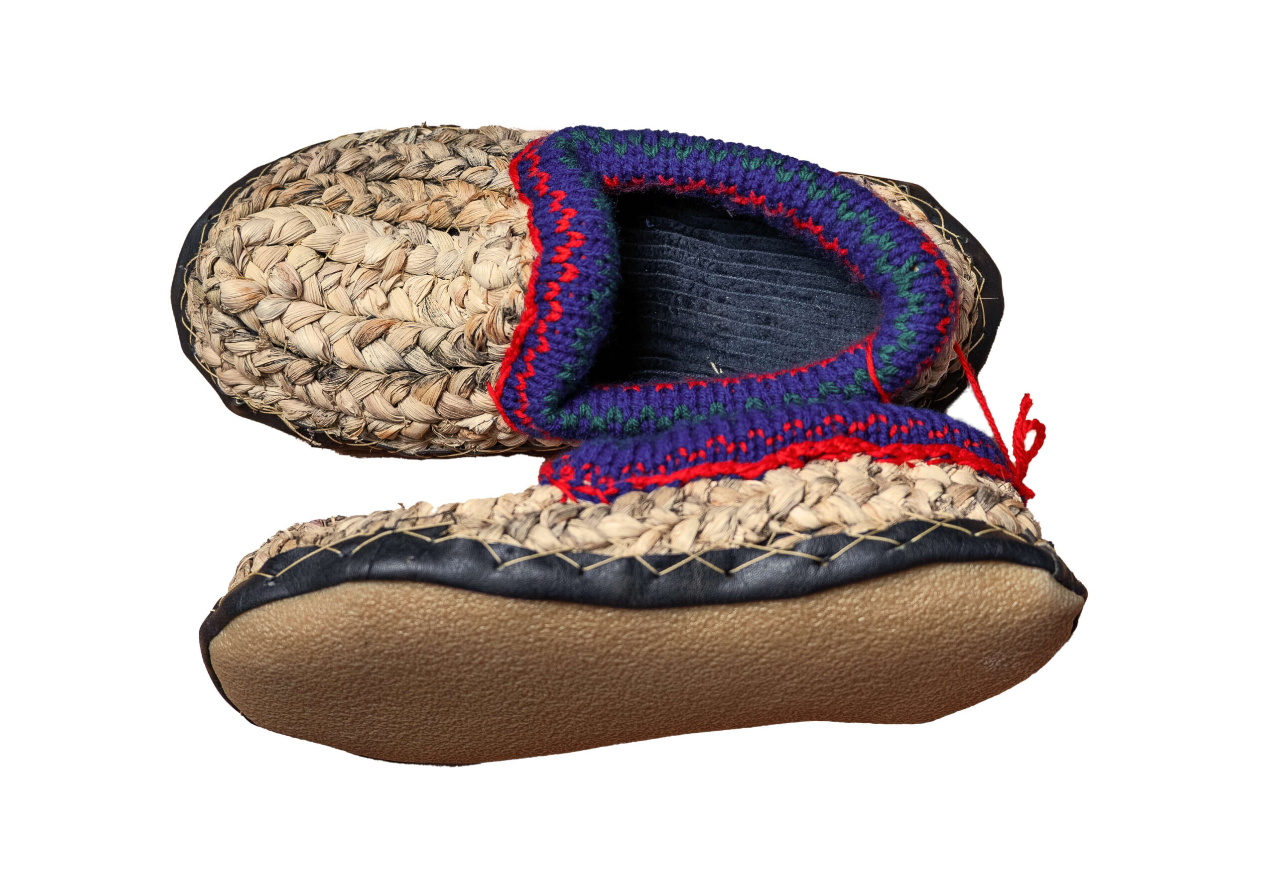 Die Maisstrohschuhe sind nicht nur draußen und bei Fastnacht (schwarze wasserfeste Gummisohle (+0€) oder helle Gummisohle (+8€)) geeignet, sondern auch als sehr bequeme Hausschuhe (Ledersohle (+8€)).